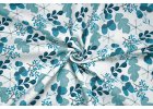 Prírodný motív v studených tónoch ľadovo modrej farby (sviežej svetlomodrej). Zloženie: 95 % bavlna, 5 % elastan, gramáž: 250 g/m2, šírka: 150 cm.